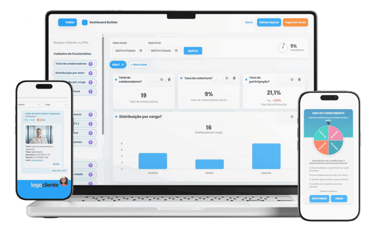 KPIs consolidados em tempo real, relatórios customizáveis e leitura clara de engajamento, adesão e ROI.